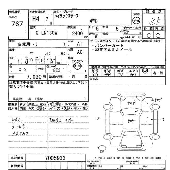 TOYOTA HILUX SURF 4WD - лот 767