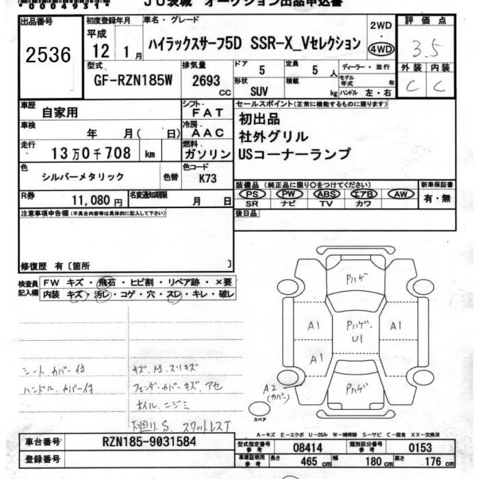 Все аукционы TOYOTA HILUX SURF