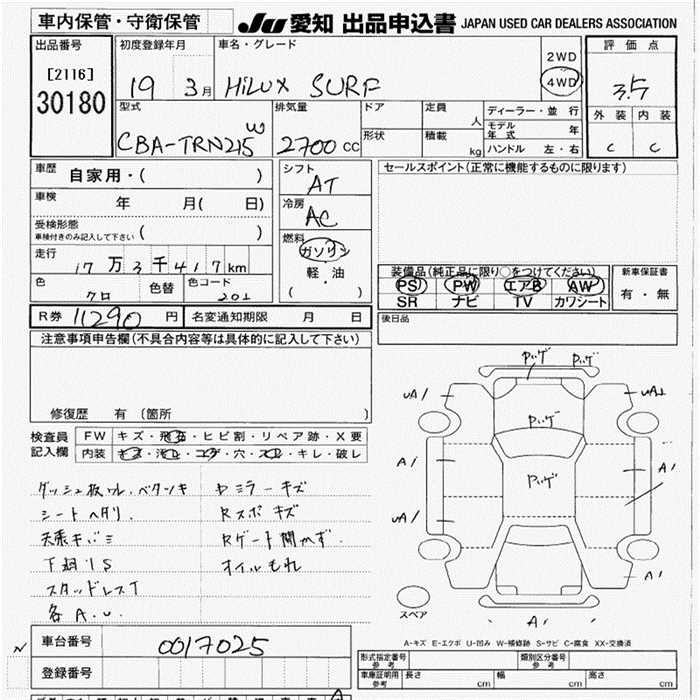 TOYOTA HILUX SURF 4WD - лот 30180