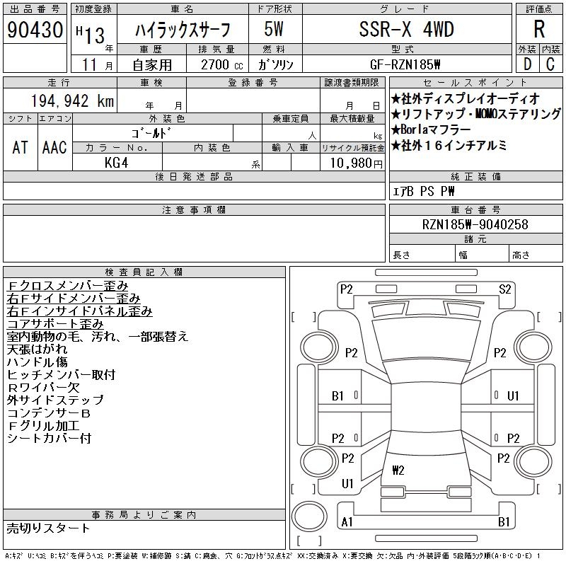 TOYOTA HILUX SURF SSR-X 4WD - лот 90430