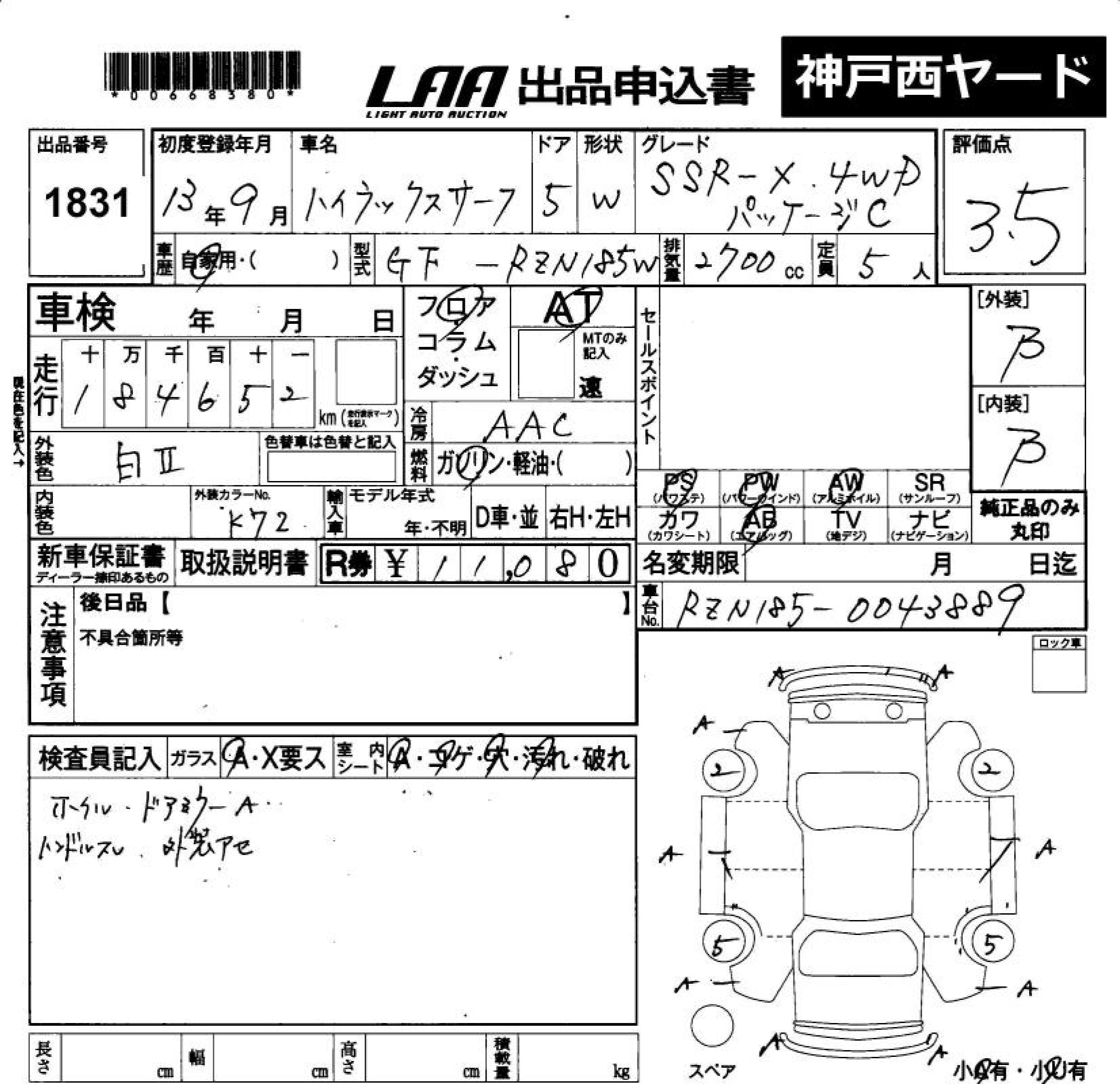 TOYOTA HILUX SURF SSR-X 4WD PACKAGE - лот 1831