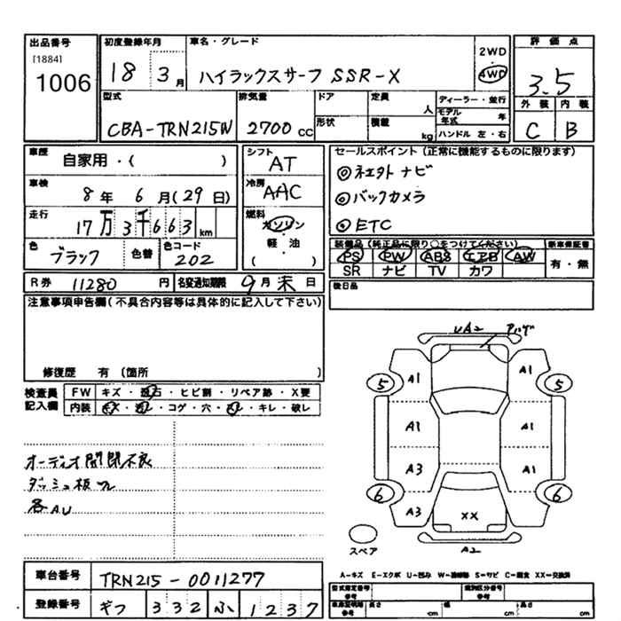 TOYOTA HILUX SURF 4WD SSR-X - лот 1006