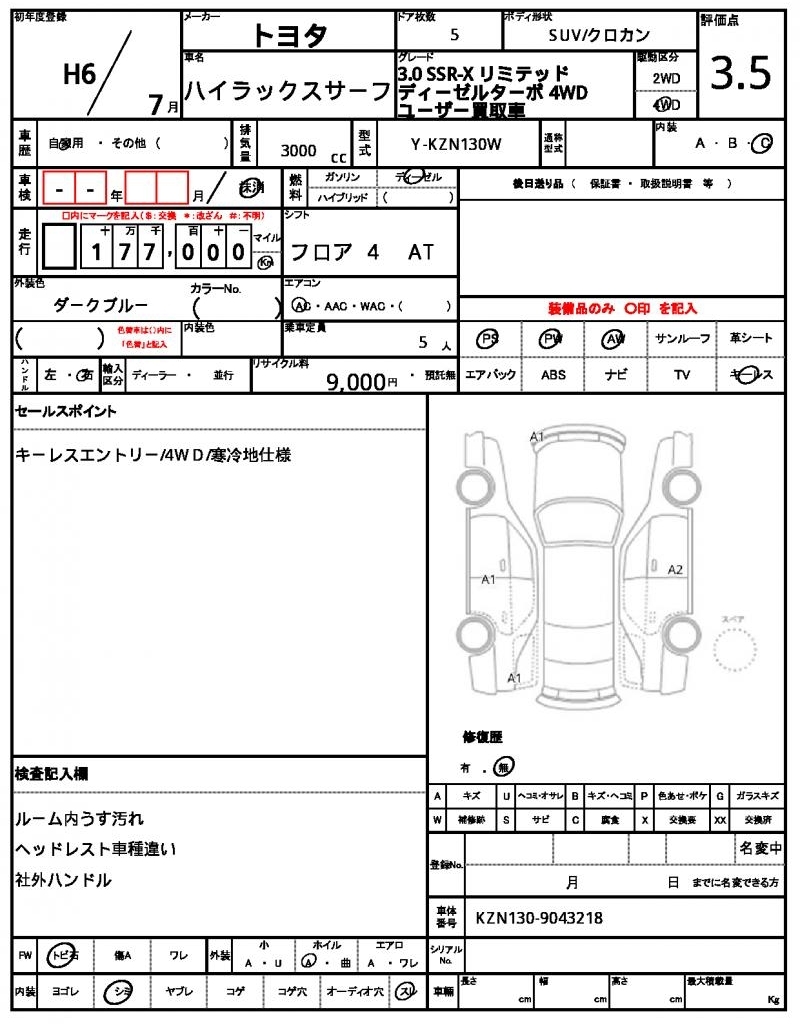 TOYOTA HILUX SURF - лот 5874