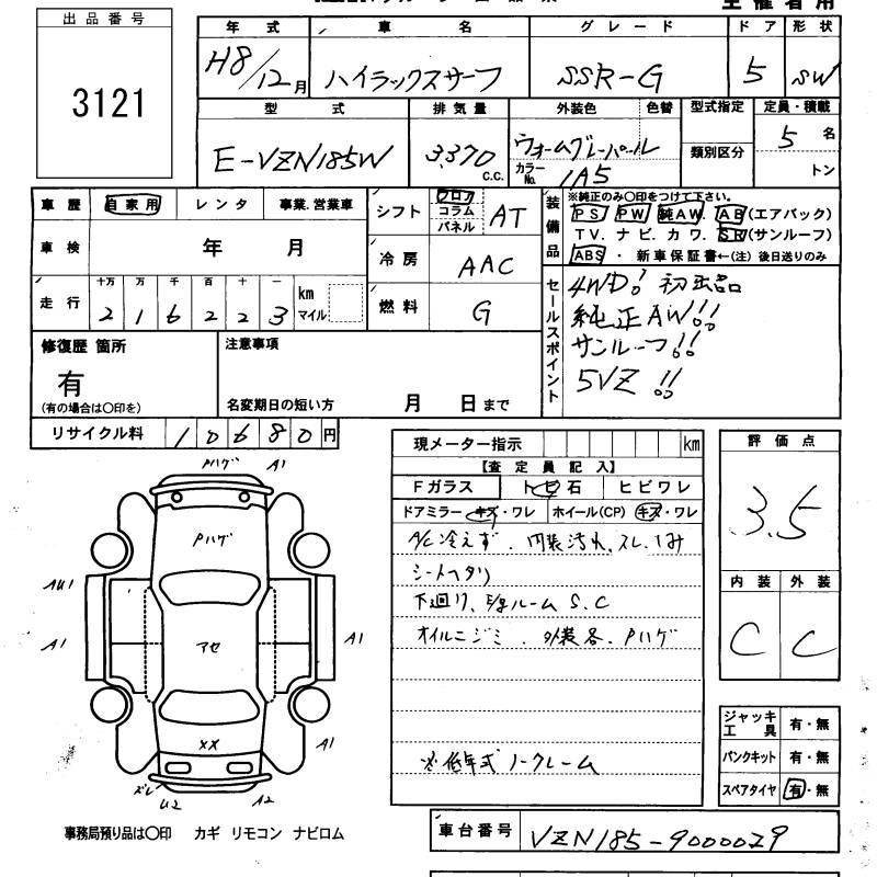 TOYOTA HILUX SURF SSR-G - лот 3121