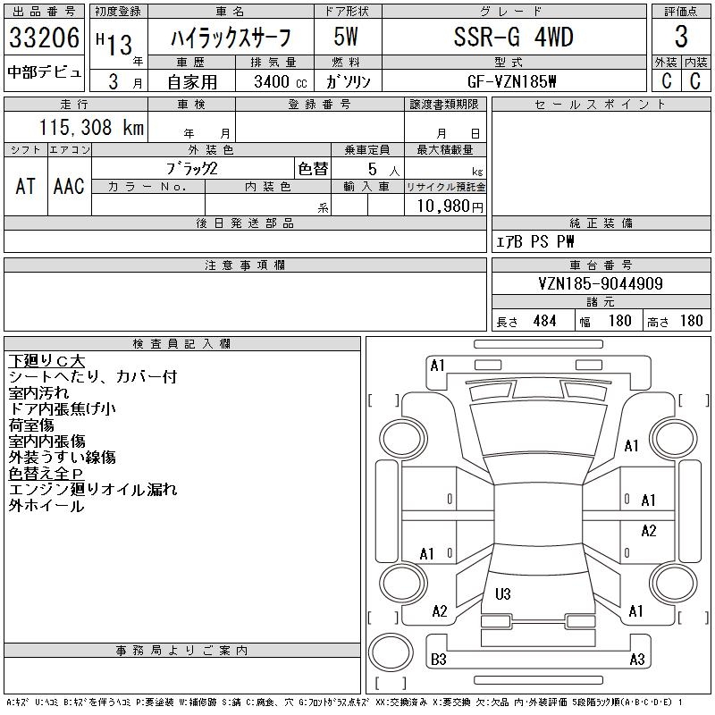 TOYOTA HILUX SURF - лот 33206