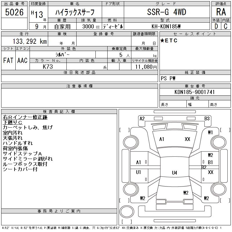 TOYOTA HILUX SURF - лот 5026