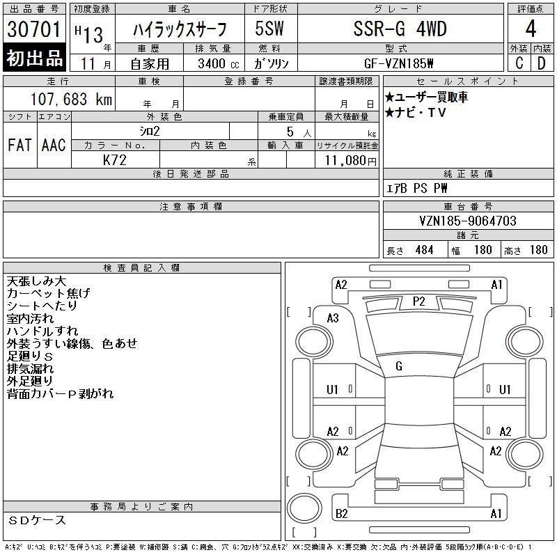 TOYOTA HILUX SURF - лот 30701