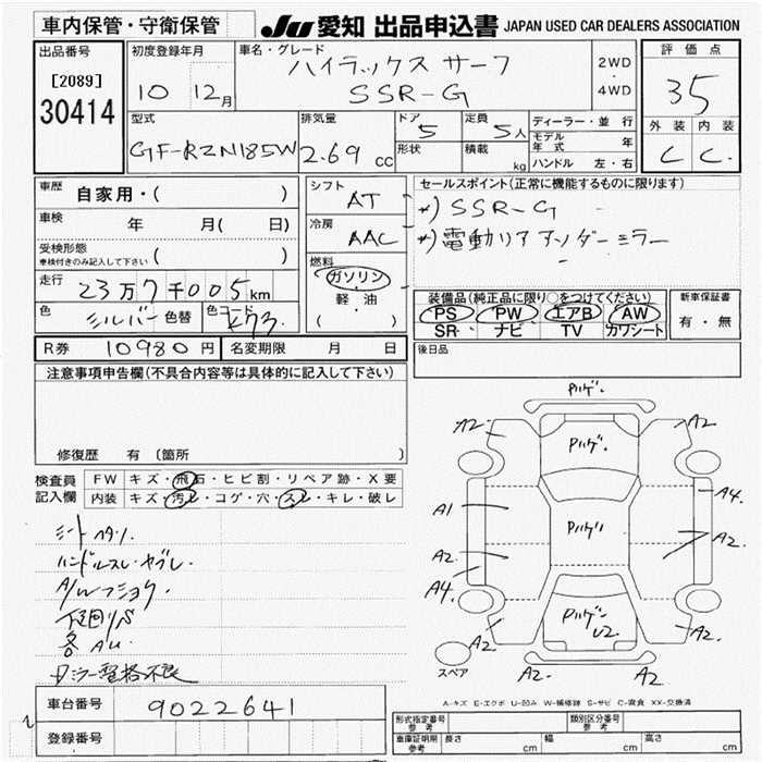 TOYOTA HILUX SURF - лот 30414