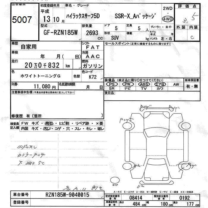 TOYOTA HILUX SURF - лот 5007
