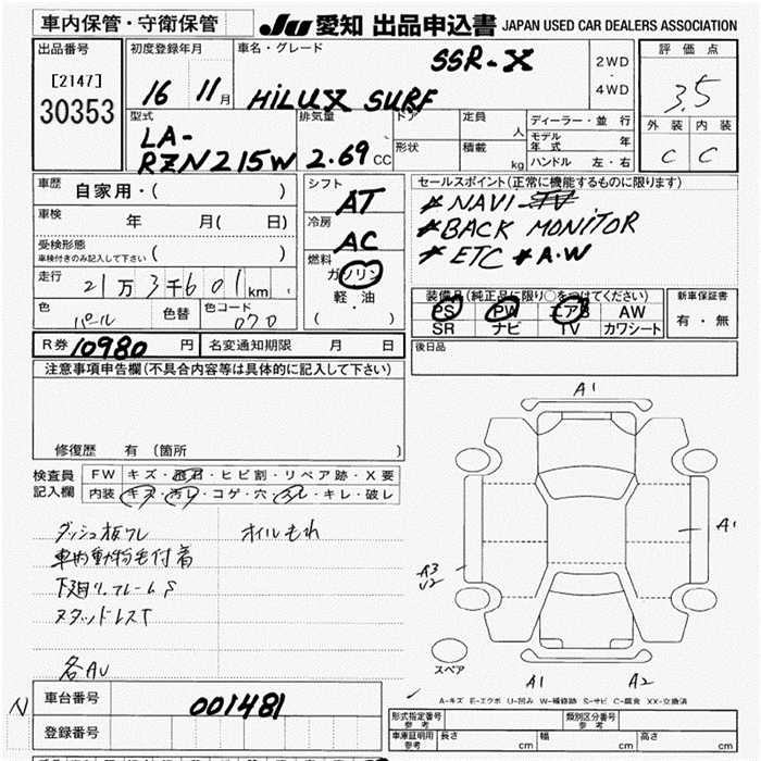 TOYOTA HILUX SURF - лот 30353