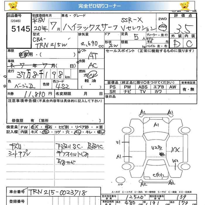 TOYOTA HILUX SURF 4WD SSR-X V SELECTION - лот 5145