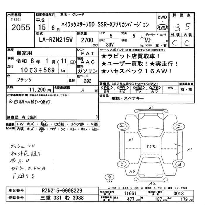 TOYOTA HILUX SURF 4WD SSR-X AMERICAN VER. - лот 2055