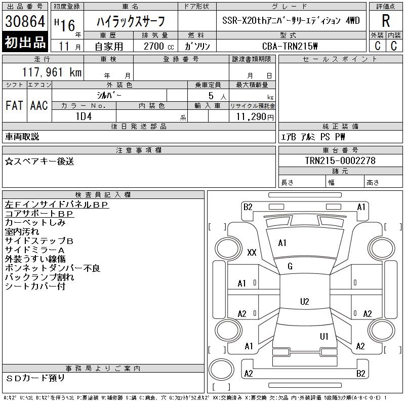 TOYOTA HILUX SURF SSR-X20TH ANNIVERSARY 4WD - лот 30864