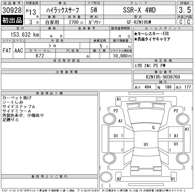 TOYOTA HILUX SURF SSR-X 4WD - лот 30928
