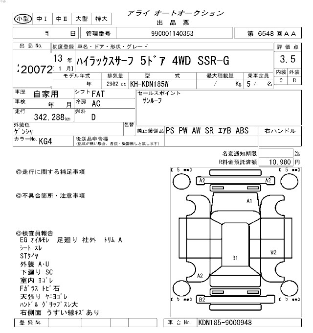 TOYOTA HILUX SURF - лот 20072