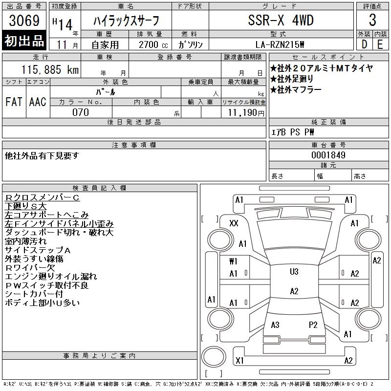 TOYOTA HILUX SURF - лот 3069