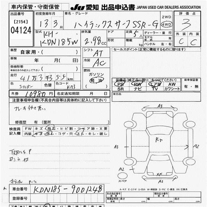 TOYOTA HILUX SURF - лот 4124