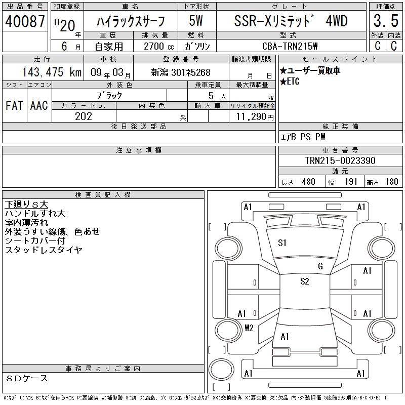 TOYOTA HILUX SURF - лот 40087