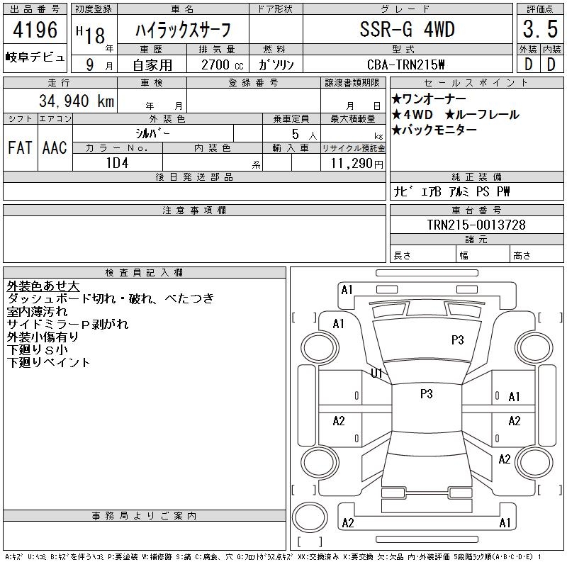 TOYOTA HILUX SURF - лот 4196