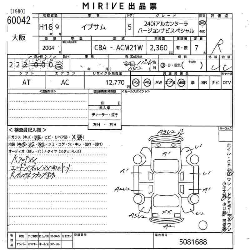 TOYOTA IPSUM 240I ALCANTARA VER JOHN NAVIGATION SPECIAL - лот 60042