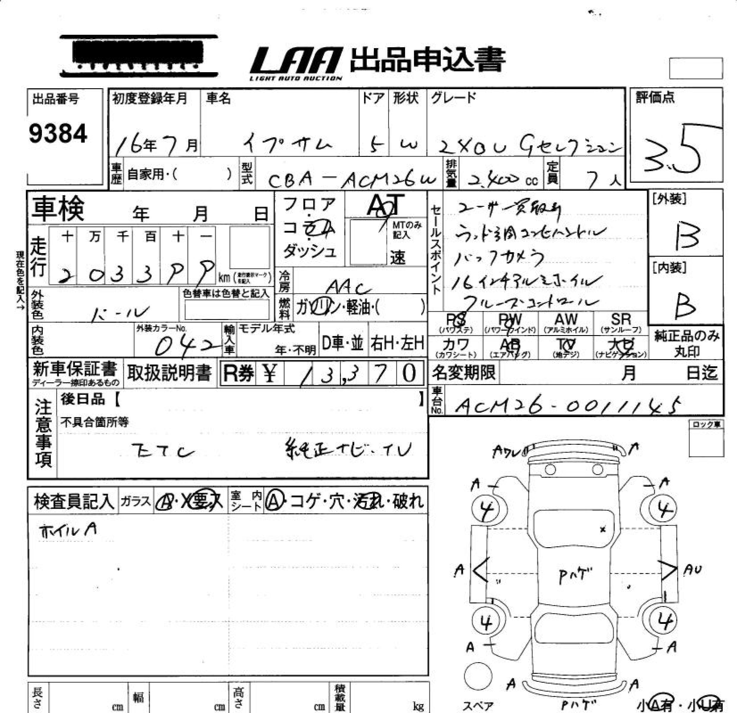 TOYOTA IPSUM - лот 9384