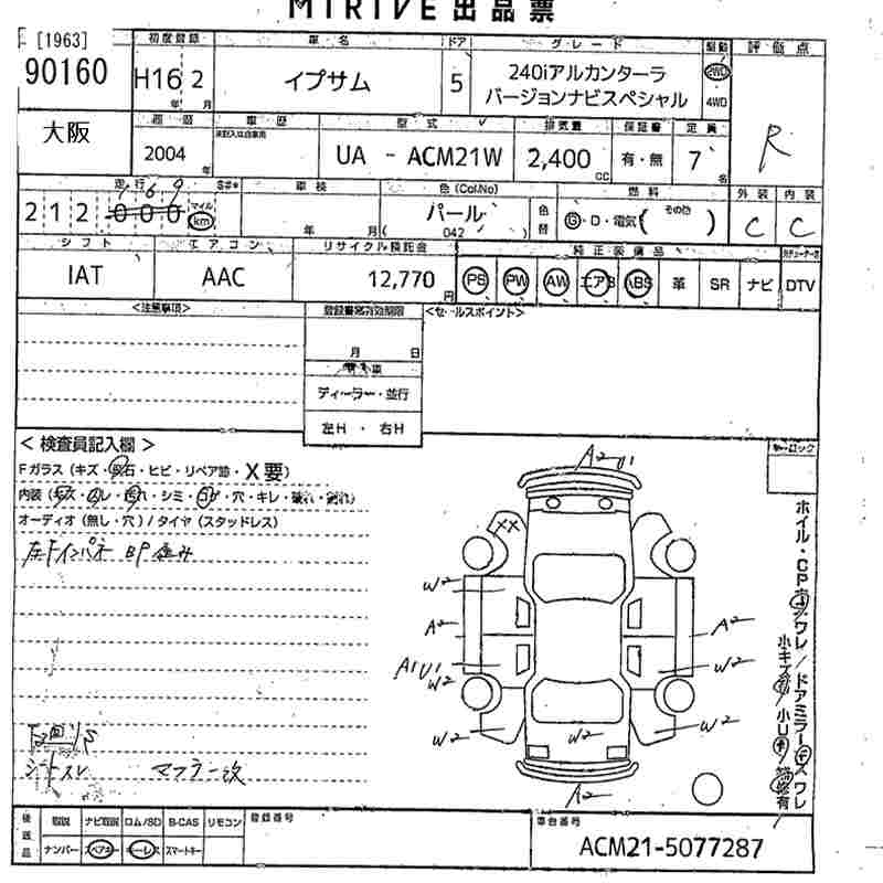 TOYOTA IPSUM 240I ALCANTARA VER JOHN NAVIGATION SPECIAL - лот 90160