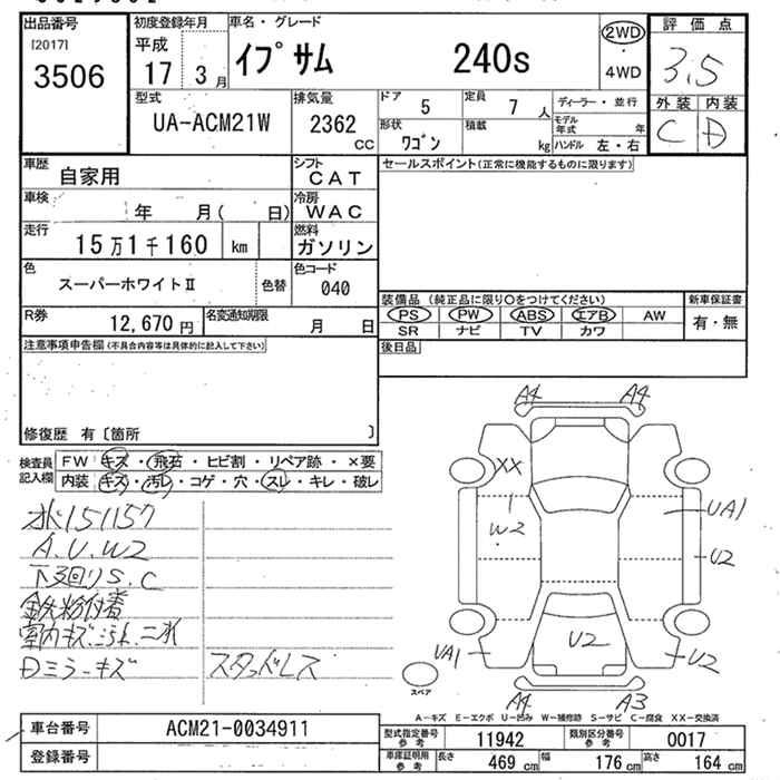 TOYOTA IPSUM 240s - лот 3506