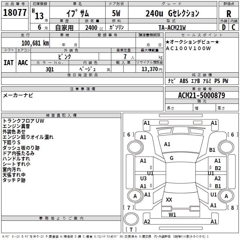 TOYOTA IPSUM 240U G SELECTION - лот 18077