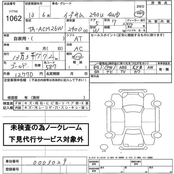 TOYOTA IPSUM 4WD 240u - лот 1062