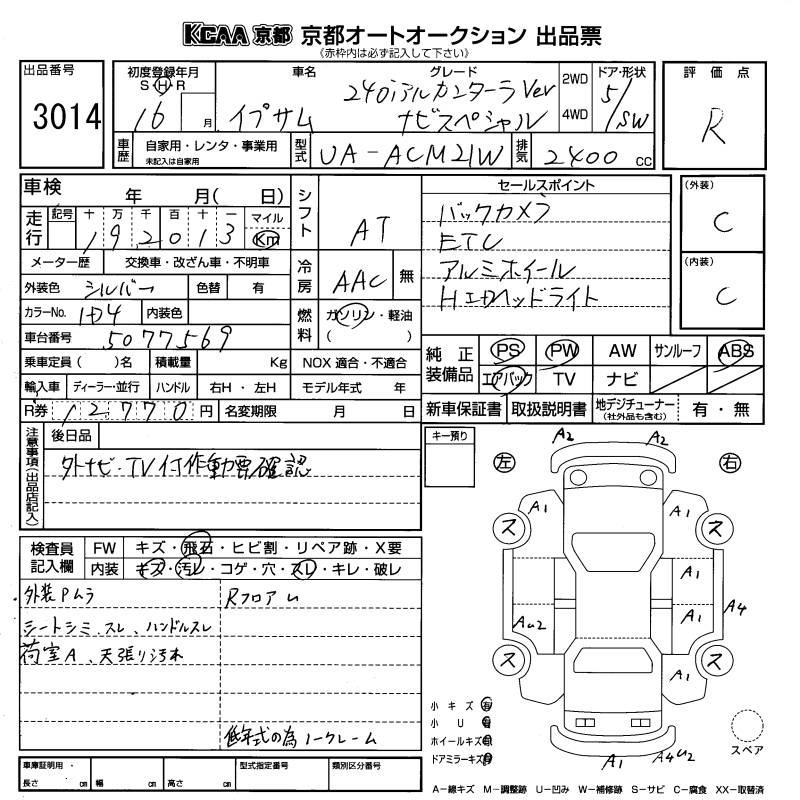 TOYOTA IPSUM 240I ALCANTARA VER NAVIGATION SP - лот 3014