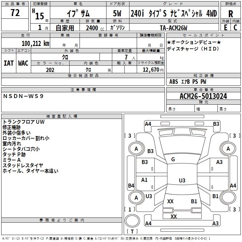 TOYOTA IPSUM 240I TYPE S NAVIGATION SHE4WD - лот 72