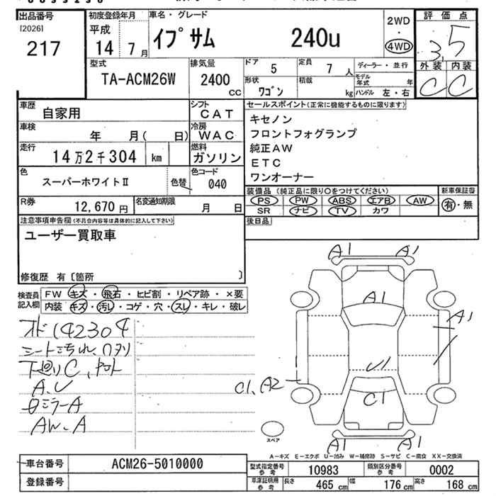 TOYOTA IPSUM 4WD 240u - лот 217