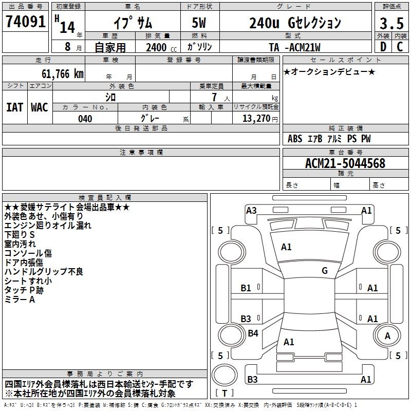 TOYOTA IPSUM 240U G SELECTION - лот 74091