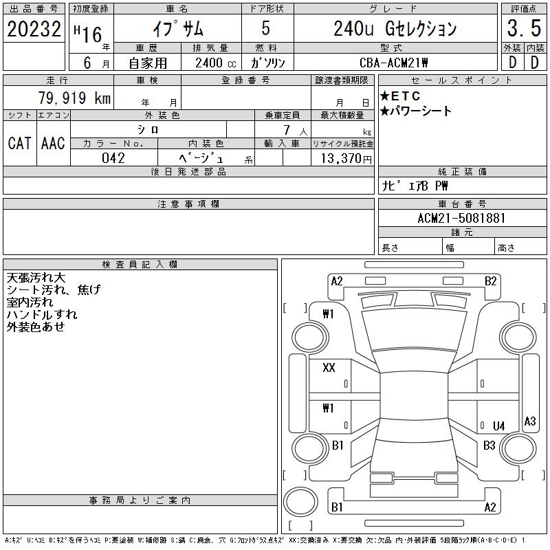 TOYOTA IPSUM 240U G SELECTION - лот 20232