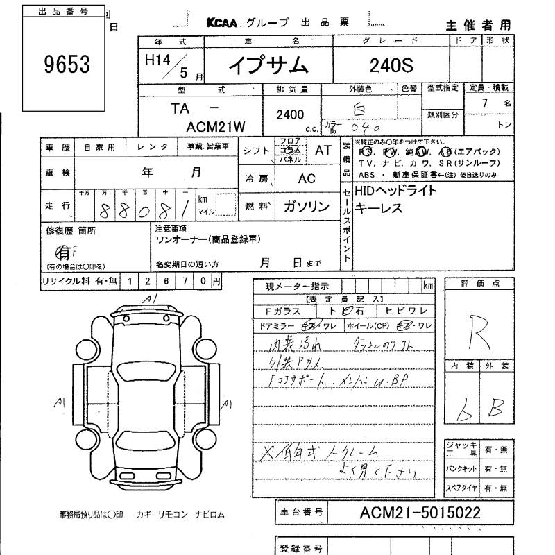 TOYOTA IPSUM 240s - лот 9653