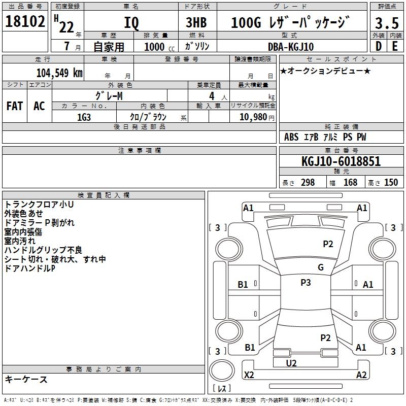 TOYOTA IQ 100G LEATHER PACKAGE - лот 18102