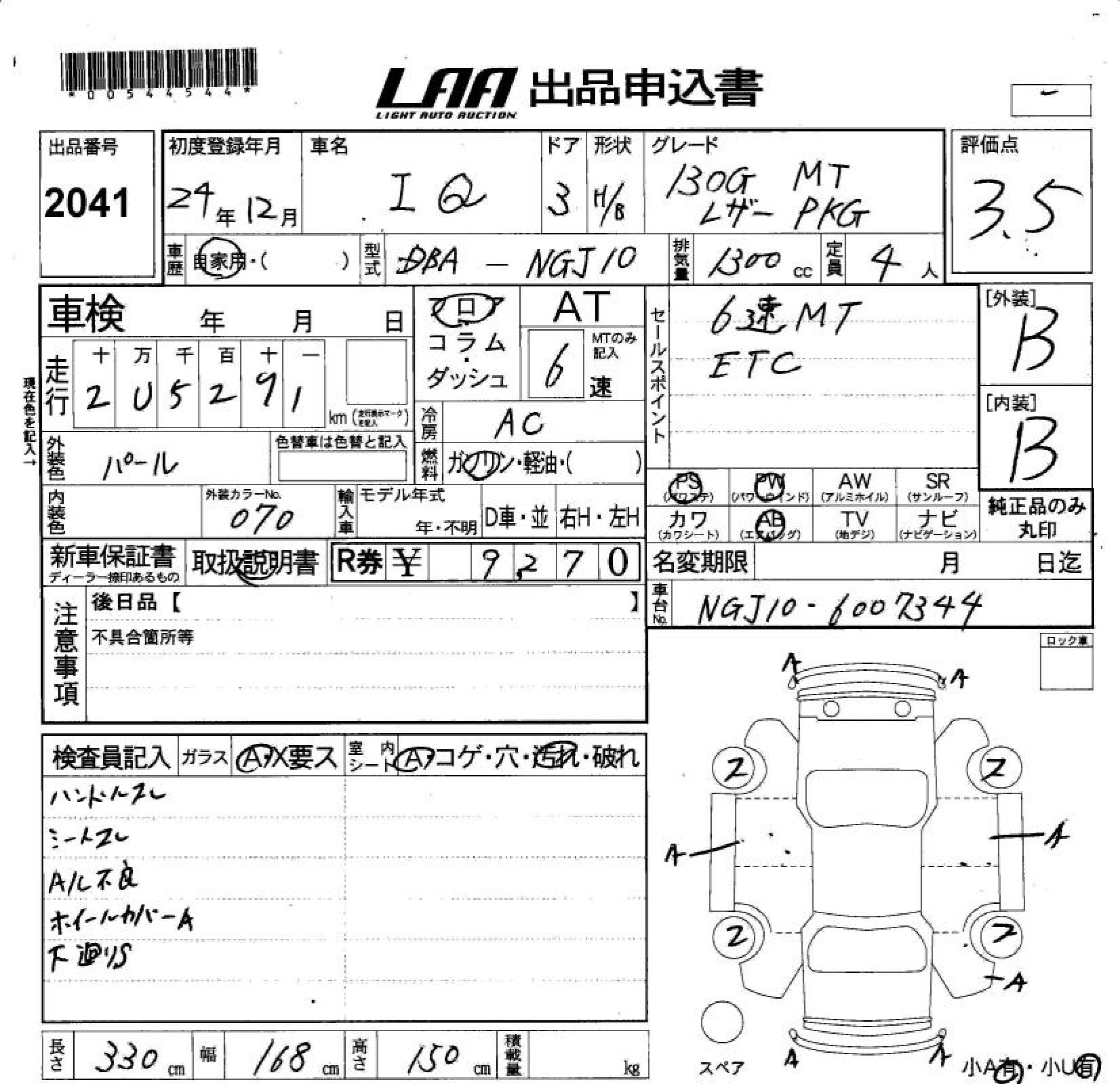 TOYOTA IQ 130G LEATHER PACKAGE M - лот 2041