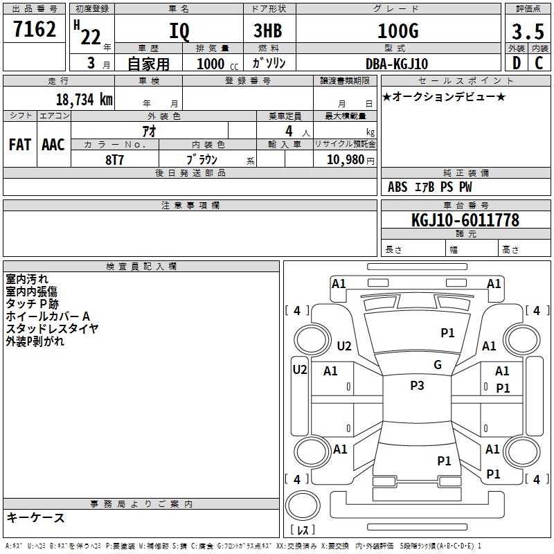 TOYOTA IQ 100G - лот 7162