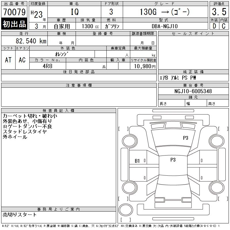 TOYOTA IQ 130GGO- - лот 70079
