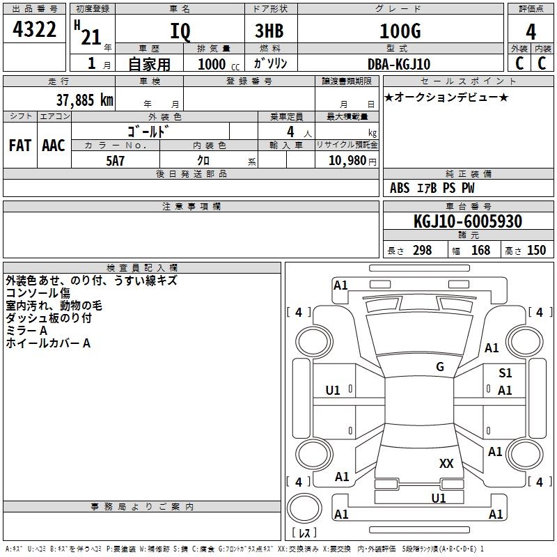 TOYOTA IQ 100G - лот 4322