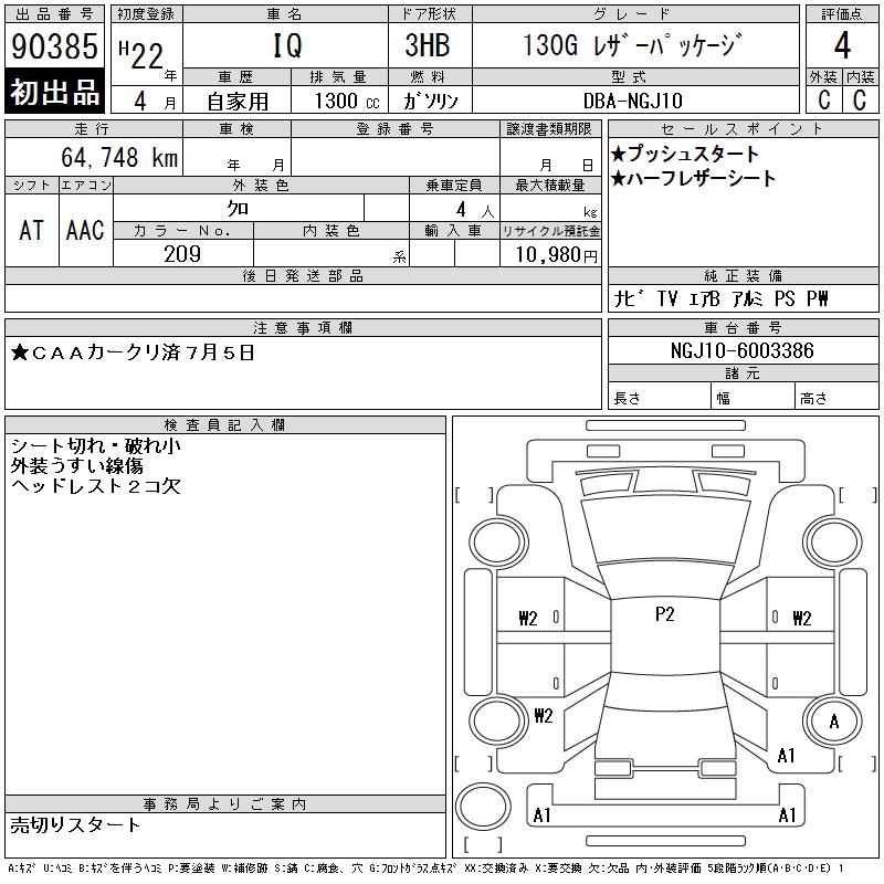 TOYOTA IQ 130G LEATHER PACKAGE - лот 90385