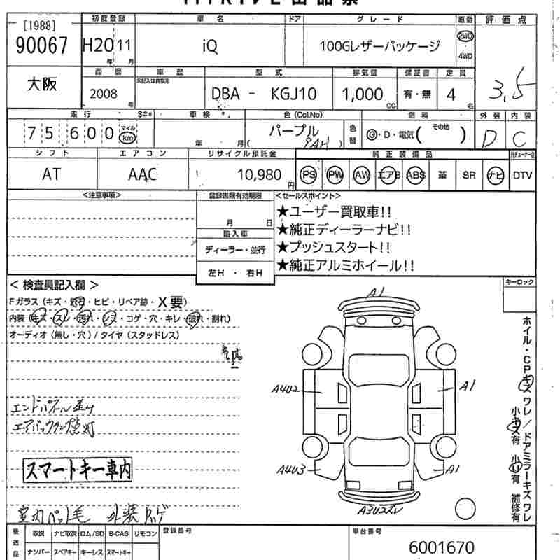 TOYOTA IQ 100G LEATHER PACKAGE - лот 90067