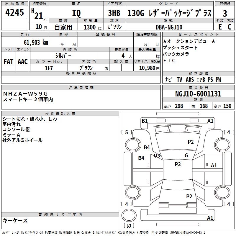 TOYOTA IQ 130G LEATHER PACKAGE PLUS - лот 4245