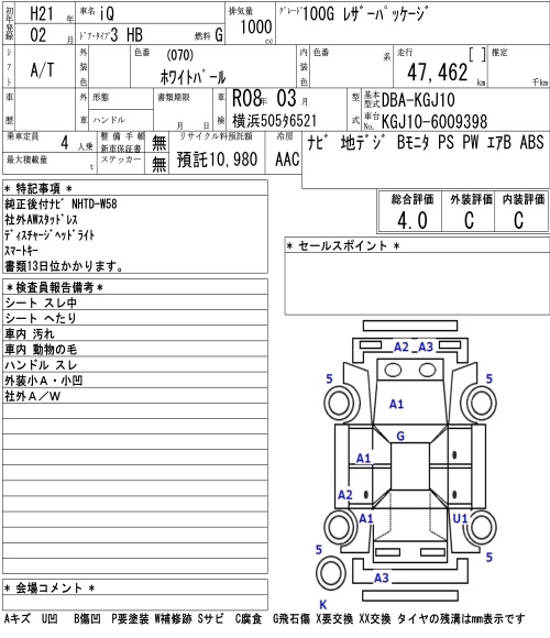TOYOTA IQ 100G LEATHER PACKAGE - лот 7007