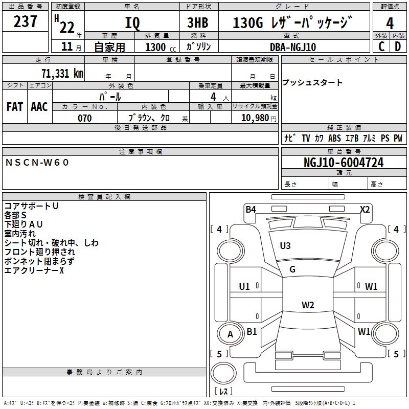 TOYOTA IQ 130G LEATHER PACKAGE - лот 237