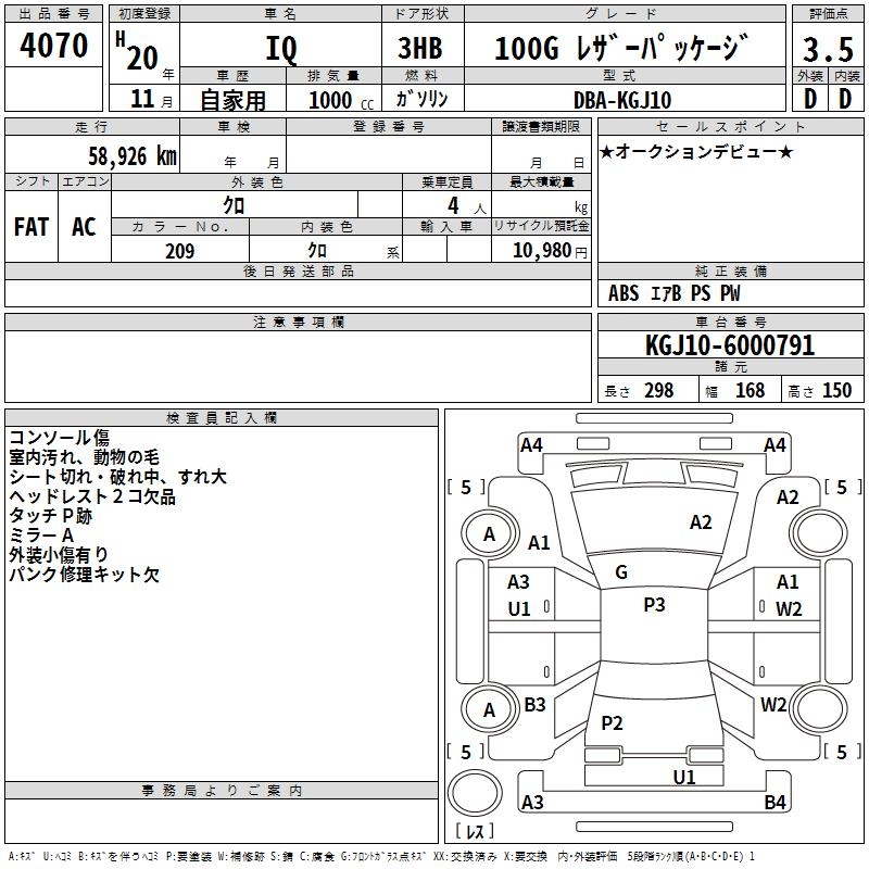 TOYOTA IQ 100G LEATHER PACKAGE - лот 4070