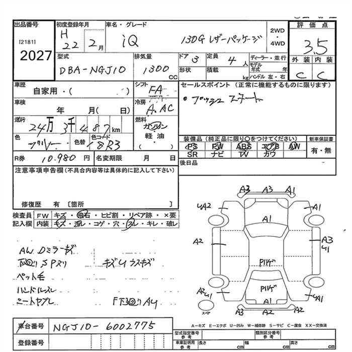 TOYOTA IQ 130G LEATHER PACKAGE - лот 2027
