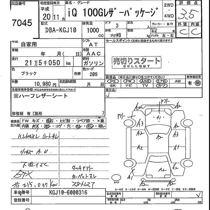 TOYOTA IQ 100G LEATHER PACKAGE - лот 7045