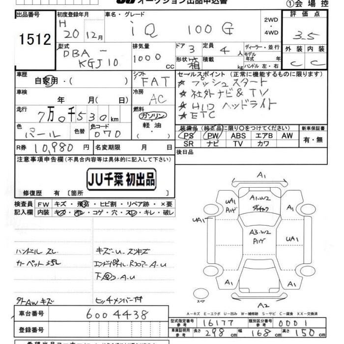 TOYOTA IQ 100G - лот 1512