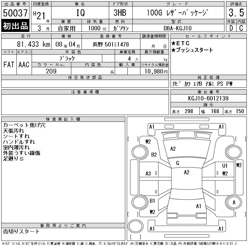 TOYOTA IQ 100G LEATHER PACKAGE - лот 50037